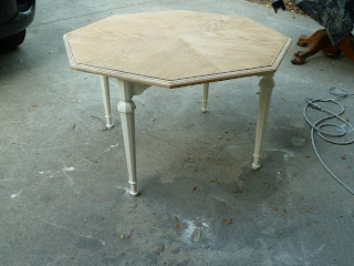 My favorite combination - dark stain & white/off-white paint! :) Especially when it's done to a table that was reduced 3 times! Looks great!